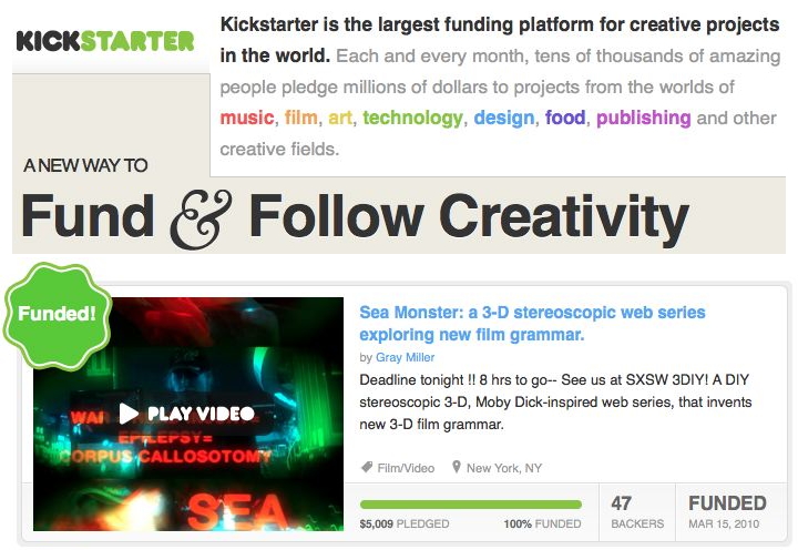 Finita l’era dei mecenati, finiti i soldi dei venture capitalist, a credere nelle buone idee (e a trovare i denari per realizzarle) c’è rimasta solo la rete, dunque noi stessi. Kickstarter è una meravigliosa piattaforma di crowd financing, a metà tra ebay e il kibbutz: ogni giorno, centinaia di persone postano il loro progetto, il loro business plan, la cifra necessaria perchè veda la luce, e che cosa daranno in cambio ai sostenitori. Dopodiché, parte il countdown: se si raggiunge il budget entro il tempo previsto la cosa parte. Altrimenti, amici come prima. Ci si trova di tutto, dalle cose più nobili e ambiziose fino a performance bizzarre in perfetto stile Guinness World Record. Se avete un sogno nel cassetto, questo è il momento.