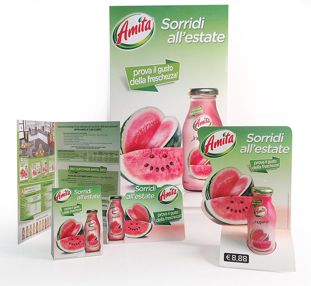 Anche per l’edizione speciale al gusto di Anguria Save As è al fianco di CChbc per il brand Amita che segue dal suo lancio in Italia. Dopo solo quattro anni il brand ha raggiunto una quota di mercato pari al 17,6%, in continua crescita ed è il secondo brand di bevande alla frutta del canale Day Time Bar.