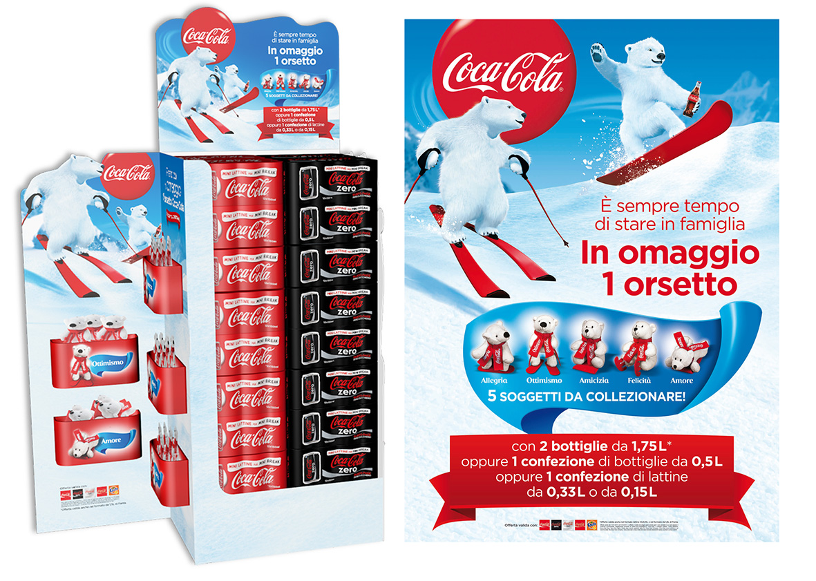 Gli orsetti polari Coca-Cola si faranno portavoce di questi valori e promuoveranno il messaggio dello stare bene in famiglia attraverso un’attività in store che dal 10 gennaio al 31 marzo coinvolgerà numerosi punti vendita. Il materiale di attivazione della promozione e di visibilità curato graficamente da Save as garantirà presidio sui punti vendita per tutto il periodo dell’attività mantenendo vivo il forte legame emotivo che caratterizza il rapporto tra Coca-Cola e i suoi consumatori.