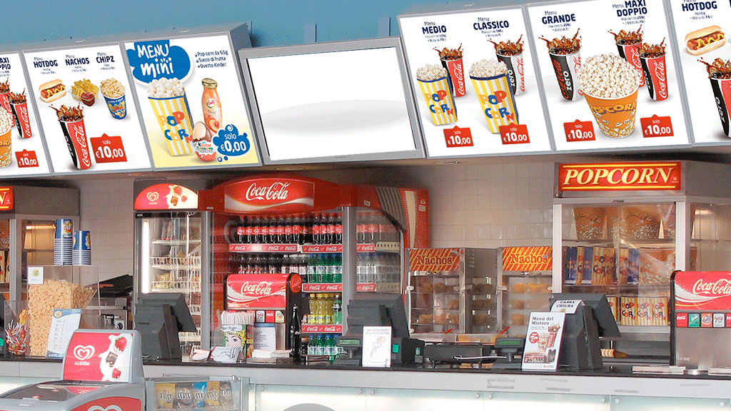 Save As ha curato in collaborazione con Coca-Cola e UCI Cinemas la riorganizzazione dell’offerta e il restyling grafico dei menu statici e dinamici proposti all’interno della zona bar delle sale UCI Cinemas.