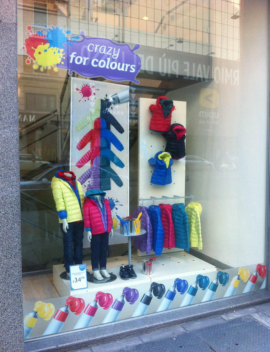 Il colore impazza negli store Prénatal! Save As si è occupata di trasformare le vetrine in un mondo di colore e vivacità: grandi vetrofanie di tubi di tempera, splash, veri pennelli e secchi di vernice completano l’arredo, come elementi reali.