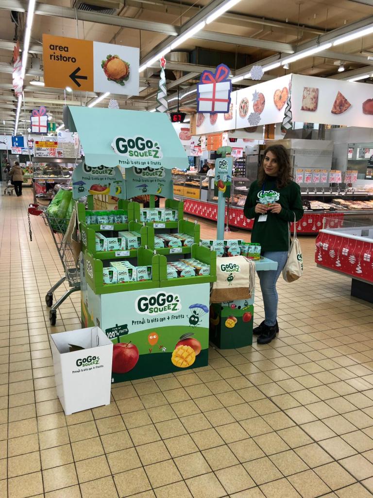 Save As, shopper marketing agency del gruppo Bel Italia, ha curato la comunicazione e l’attivazione in-store ( tasting e sampling con hostess e pop mats) per GoGo SqueeZ®, che ha iniziato la sua avventura in Italia a settembre 2019. Deliziose puree di 100% frutta, raccolta in frutteti che usano solo le migliori pratiche di semina e raccolta e la cui buccia tolta viene riciclata, proposte in originali confezioni ‘squeez’ richiudibili e dotate dello speciale “eli-tappo”, che aiuta a racchiudere tutta la bontà della frutta fresca da far gustare ai bambini dovunque vadano.