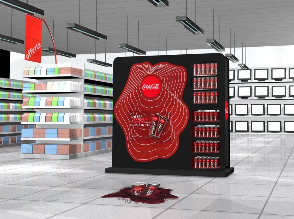 Dopo l’ evento di benvenuto, che si è svolto in contemporanea a Milano e Londra per celebrare il lancio ufficiale di Coca-Cola Energy, l’azienda tramite i suoi distributori, sta allestendo i punti vendita, per annunciarlo anche nei canali casa a fuori casa, con in-store communication toolkit ‘disruptive’ declinati da Save As.