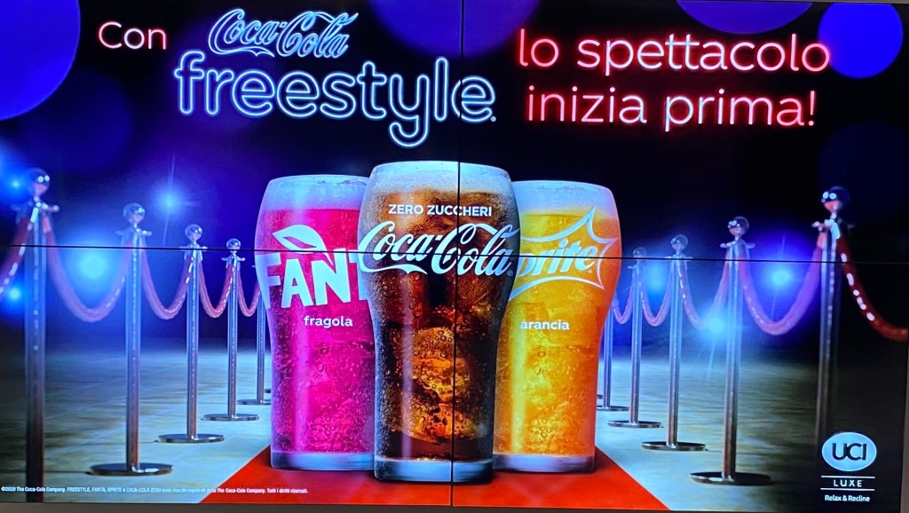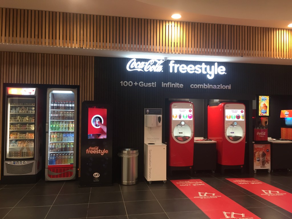 Coca-Cola Freestyle® è un sistema di erogazione delle bevande altamente tecnologico che elimina ogni barriera al desiderio di sperimentare e giocare con il gusto: attraverso un touchscreen e la tecnologia del microdosaggio, consente di comporre la propria bevanda Coca-Cola personalizzata. Produce a richiesta oltre 150 bevande gassate o lisce, comprese oltre 70 versioni a basso o nullo contenuto calorico e 90 e più opzioni solo per il dosaggio della caffeina. Oggi è possibile vivere l’esperienza nei migliori multisala UCI LUXE. Coca-Cola Freestyle® riflette i valori di The Coca-Cola Company nei confronti dei consumatori e anche dell’ambiente. L’alta tecnologia e gli ingredienti concentrati permettono di ridurre i rifiuti in plastica del 30% e di ridurre il volume delle confezioni del 40%, limitando il trasporto di liquidi e, di conseguenza, le relative emissioni di CO2. La novità, oltre al design e a uno schermo touchscreen ad alta definizione, sta nella connettività bluetooth che permette agli utenti che hanno installato l’app Coca-Cola Freestyle sul proprio telefono di interagire con la macchina non appena si trovano nelle sue vicinanze, senza toccarla, in completa sicurezza.