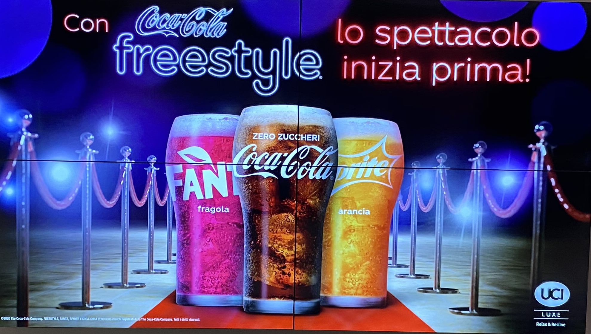 Coca-Cola Freestyle® è un sistema di erogazione delle bevande altamente tecnologico che elimina ogni barriera al desiderio di sperimentare e giocare con il gusto: attraverso un touchscreen e la tecnologia del microdosaggio, consente di comporre la propria bevanda Coca-Cola personalizzata. Produce a richiesta oltre 150 bevande gassate o lisce, comprese oltre 70 versioni a basso o nullo contenuto calorico e 90 e più opzioni solo per il dosaggio della caffeina. Oggi è possibile vivere l’esperienza nei migliori multisala UCI LUXE. Coca-Cola Freestyle® riflette i valori di The Coca-Cola Company nei confronti dei consumatori e anche dell’ambiente. L’alta tecnologia e gli ingredienti concentrati permettono di ridurre i rifiuti in plastica del 30% e di ridurre il volume delle confezioni del 40%, limitando il trasporto di liquidi e, di conseguenza, le relative emissioni di CO2. La novità, oltre al design e a uno schermo touchscreen ad alta definizione, sta nella connettività bluetooth che permette agli utenti che hanno installato l’app Coca-Cola Freestyle sul proprio telefono di interagire con la macchina non appena si trovano nelle sue vicinanze, senza toccarla, in completa sicurezza.