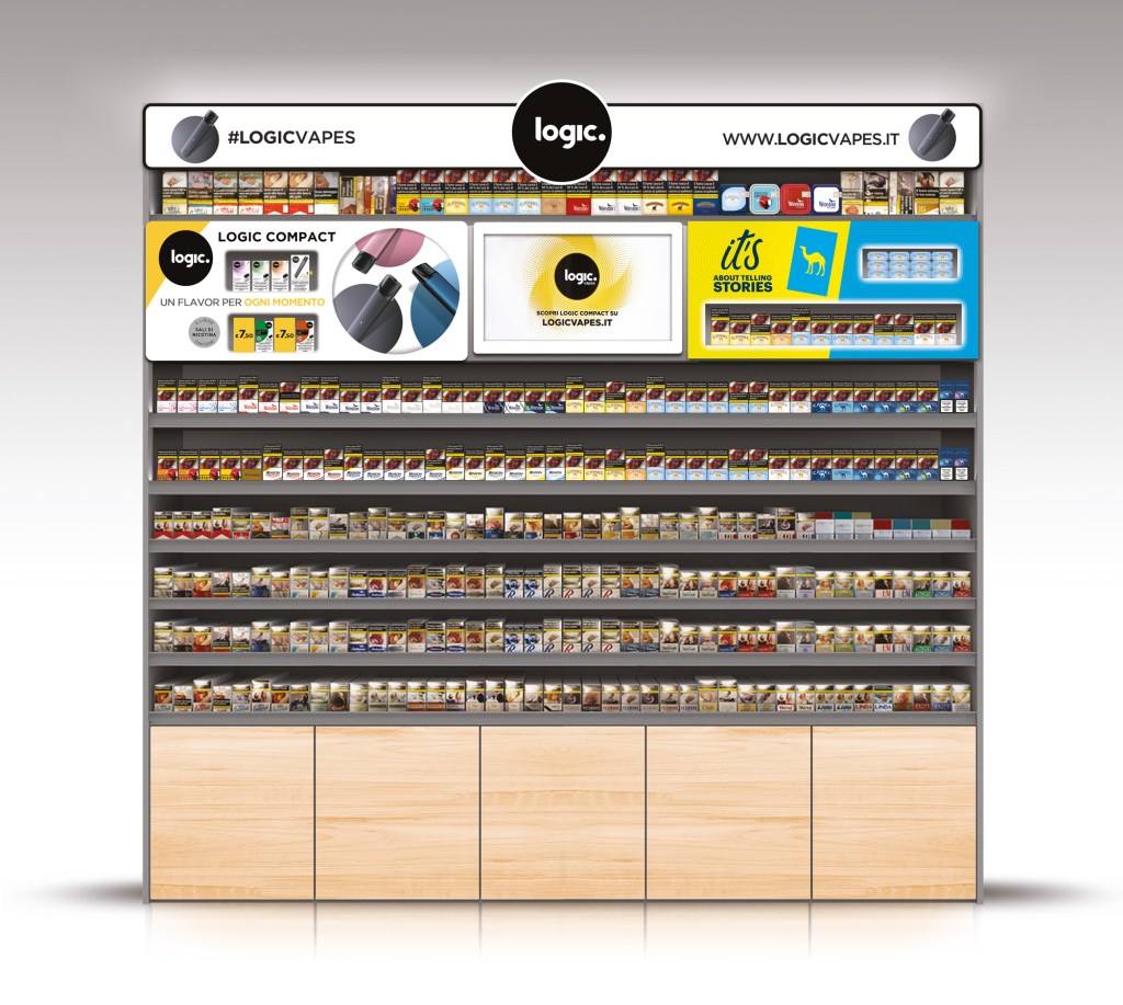 Con il supporto grafico di Save As, Japan Tobacco International inaugura un nuovo scaffale per le tabaccherie italiane, che consente la scelta per un pubblico adulto tra prodotto tradizionale e prodotto a rischio ridotto con Logic Compact: un nuovo prodotto che mantiene il piacere legato al fumo, riducendo il rischio della combustione.