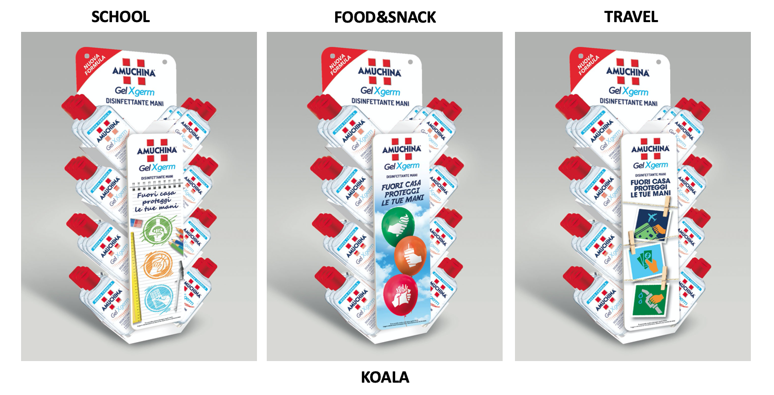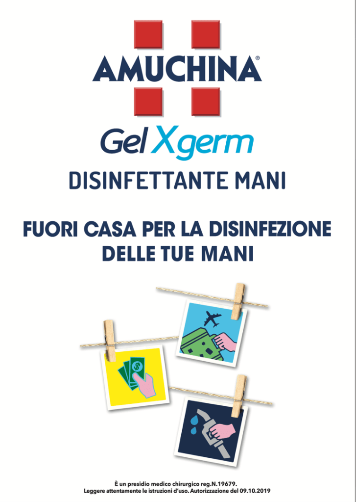 Save As firma il k-visual della comunicazione di Amuchina GelXgerm disinfettante mani, declinandolo in-store, out-of-store e su web.