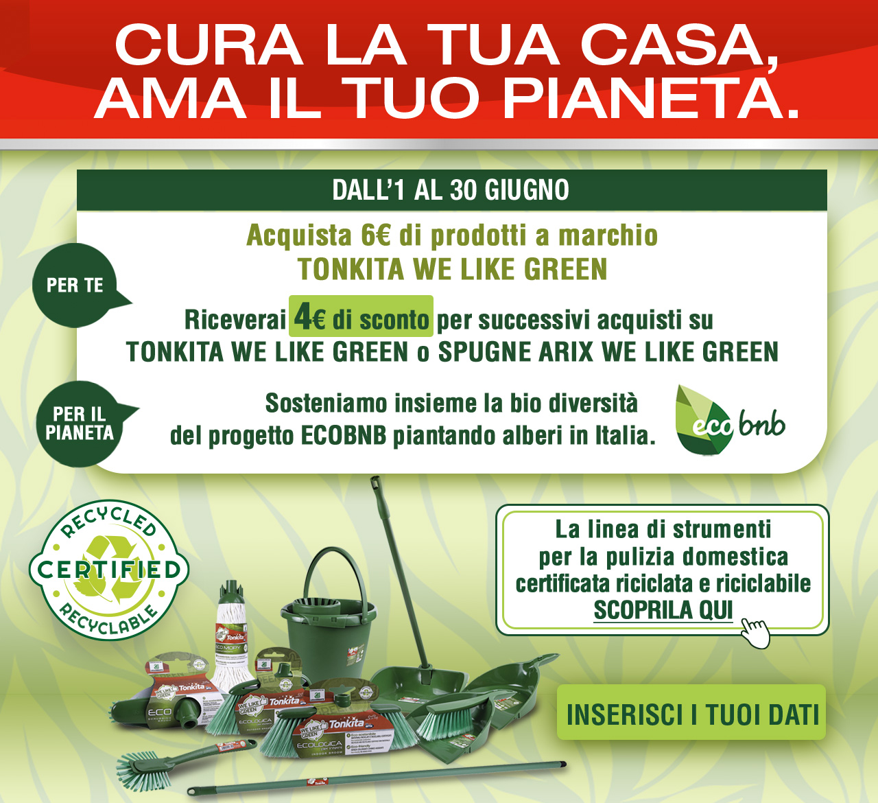 L’ iniziativa, ideata da Save As, ha il duplice obiettivo di supportare trial e repeat della prima linea di scope e strumenti di pulizia Made in Italy realizzati esclusivamente con materiali 100% riciclati e riciclabili: Tonkita We Like Green di Arix, l’azienda leader nel settore della pulizia casa e professionale e del body-care.