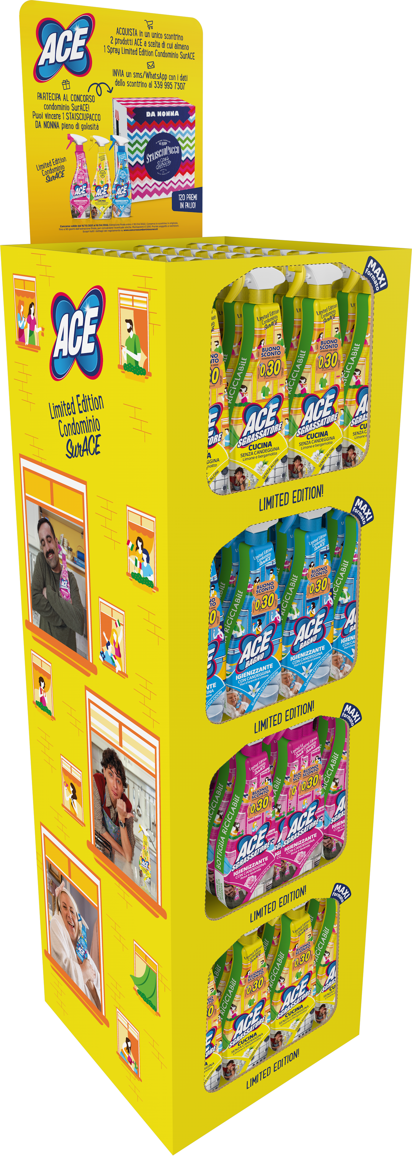 Una limited edition per gli Sgrassatori Ace in grado di catturare l’attenzione, ingaggiare e conquistare gli shopper, sia davanti allo scaffale (particolarmente affollato), che fuori scaffale.