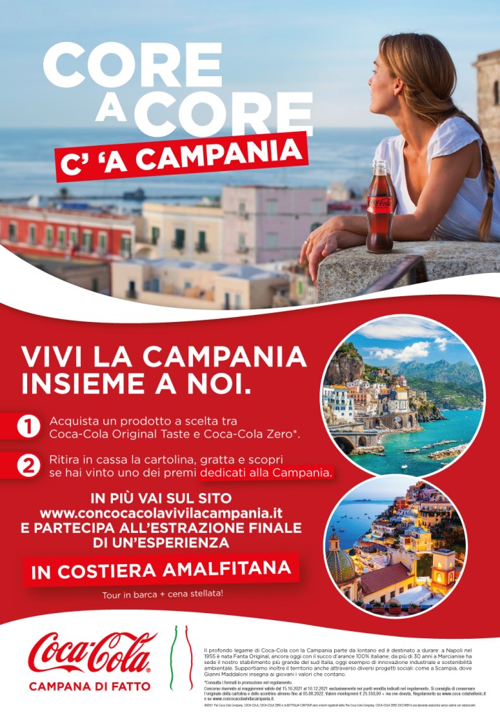 Coca-Cola è “campana di fatto”: sommando stipendi, contratti di forniture, imposte e contributi fiscali versati, sono 31 milioni di euro, pari allo 0,06% del Pil regionale, le risorse generate da Coca-Cola in Campania e destinate alle famiglie, alle imprese e allo Stato e oltre 1.200 i posti di lavoro creati direttamente e attraverso il suo indotto. Un risultato non scontato, nel periodo difficile che il Paese ha attraversato, aggravato dalle chiusure del canale Horeca che hanno generato un impatto negativo su tutta la filiera. A questo si è ispirata l’attività implementata nei punti vendita Campani tra ottobre e dicembre.