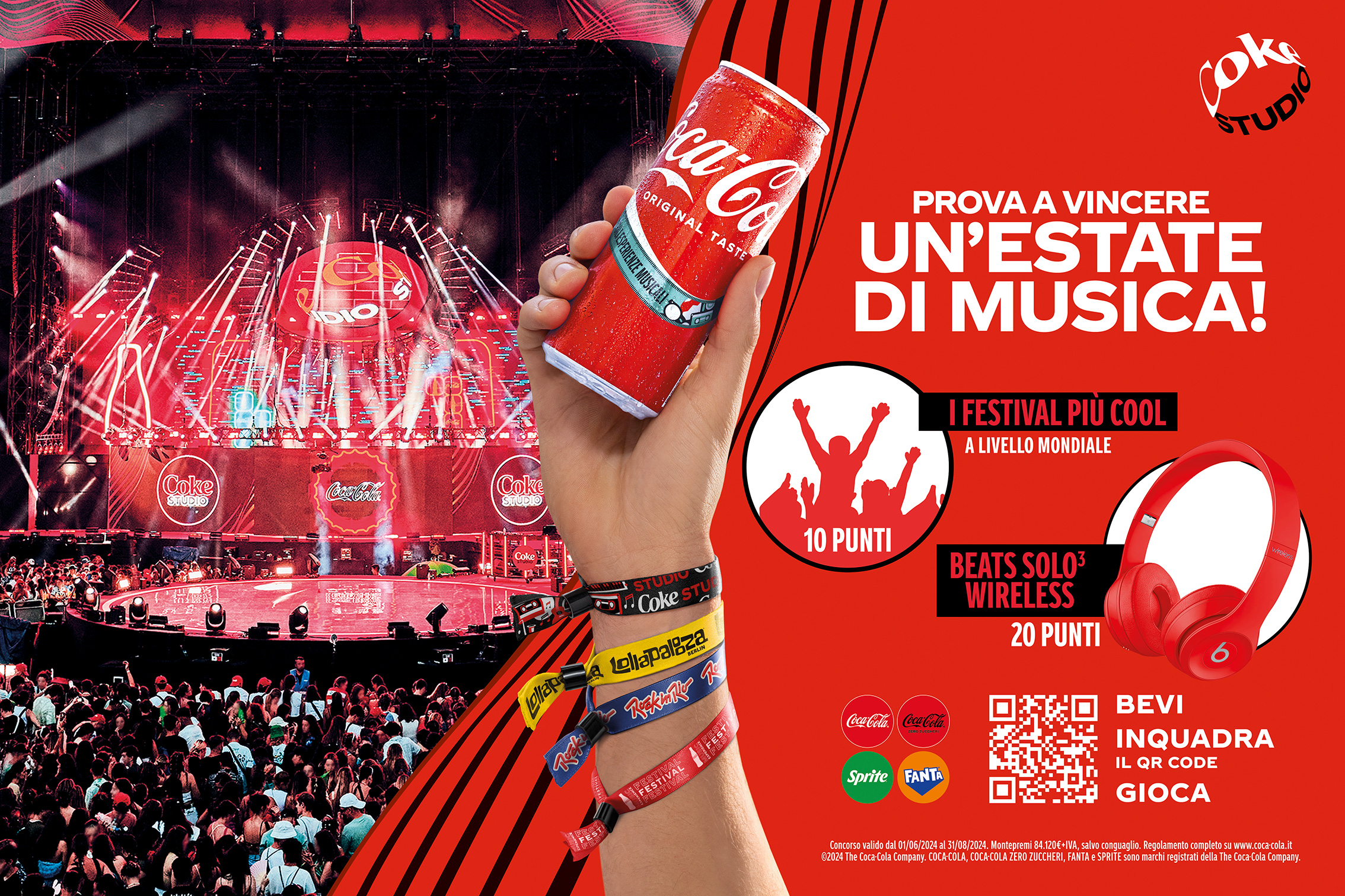 Dal 1° giugno al 31 agosto in tutti i punti vendita d’acquisto e di consumo di Coca-Cola, Sprite e Fanta si possono vincere i festival mondiali più cool dell’estate e le famose cuffie wireless Beat. Save As firma la comunicazione e i materiali dedicati.
