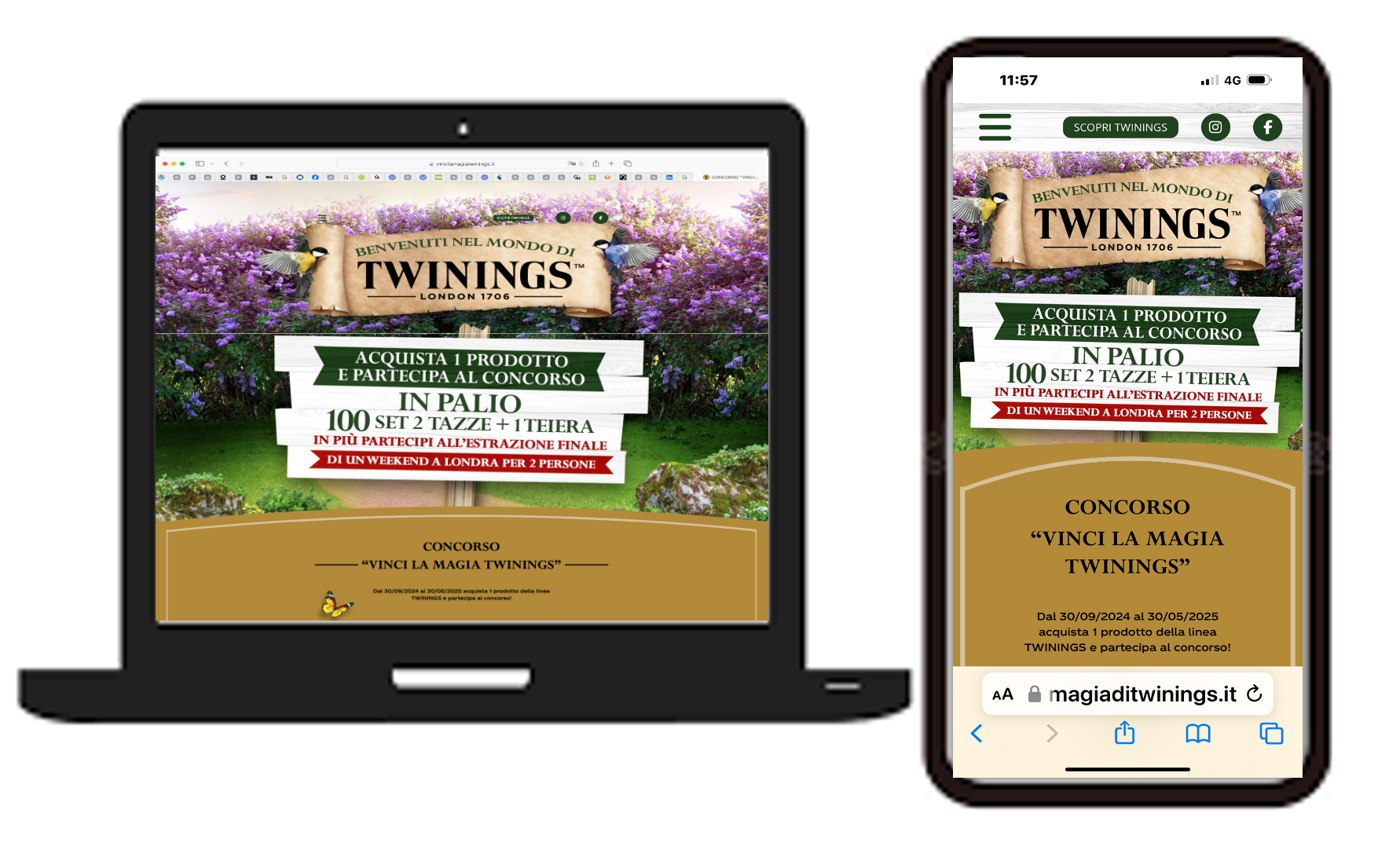 Da settembre 2024 ad aprile 2025 Twinings, leader indiscusso in Italia di tè ed infusi, dedica ai suoi acquirenti un concorso in perfetto stile british: sull’acquisto di un prodotto tra tè, infusi e le nuove tisane benessere, si può vincere uno dei 100 set di Twinings ( 2 tazze + 1 teiera) e in più si partecipa all’estrazione finale di 1 weekend a Londra per 2 persone. E’ prevista diffusione digital, social e pv, con il coinvolgimento di oltre 400 punti vendita di grandi dimensioni. Save As firma la comunicazione online/offline. la produzione dei pop materials ed il concorso, con gestione e analisi delle redemption.