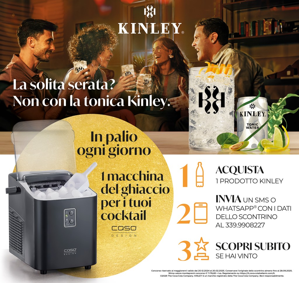 Cosa c’è di meglio per animare le nostre serate invernali a casa? Un aperitivo originale con Kinley. Diamo addio alla solita tonica e scegliamo la freschezza di Kinley! E dal 20 dicembre al 20 febbraio si può vincere una fantastica macchina per il ghiaccio.