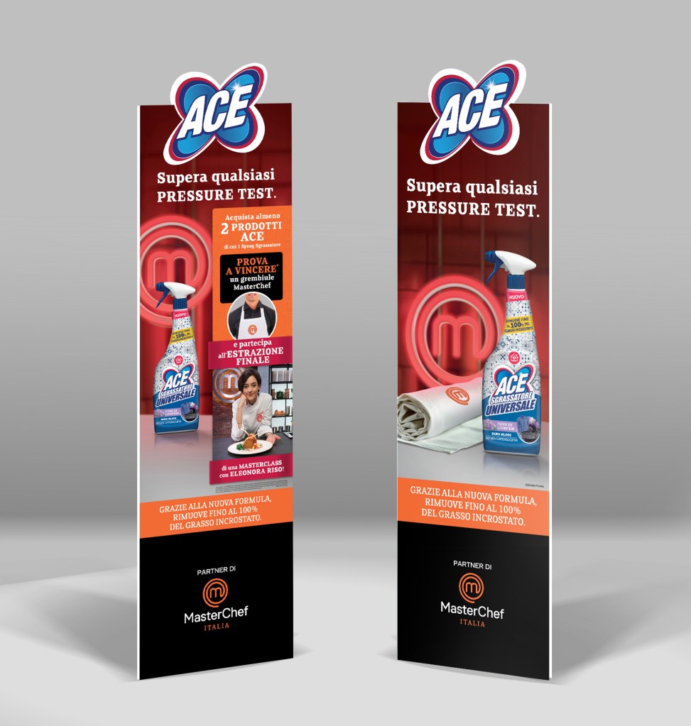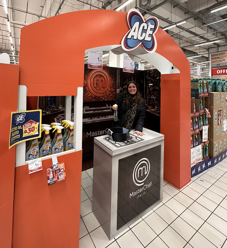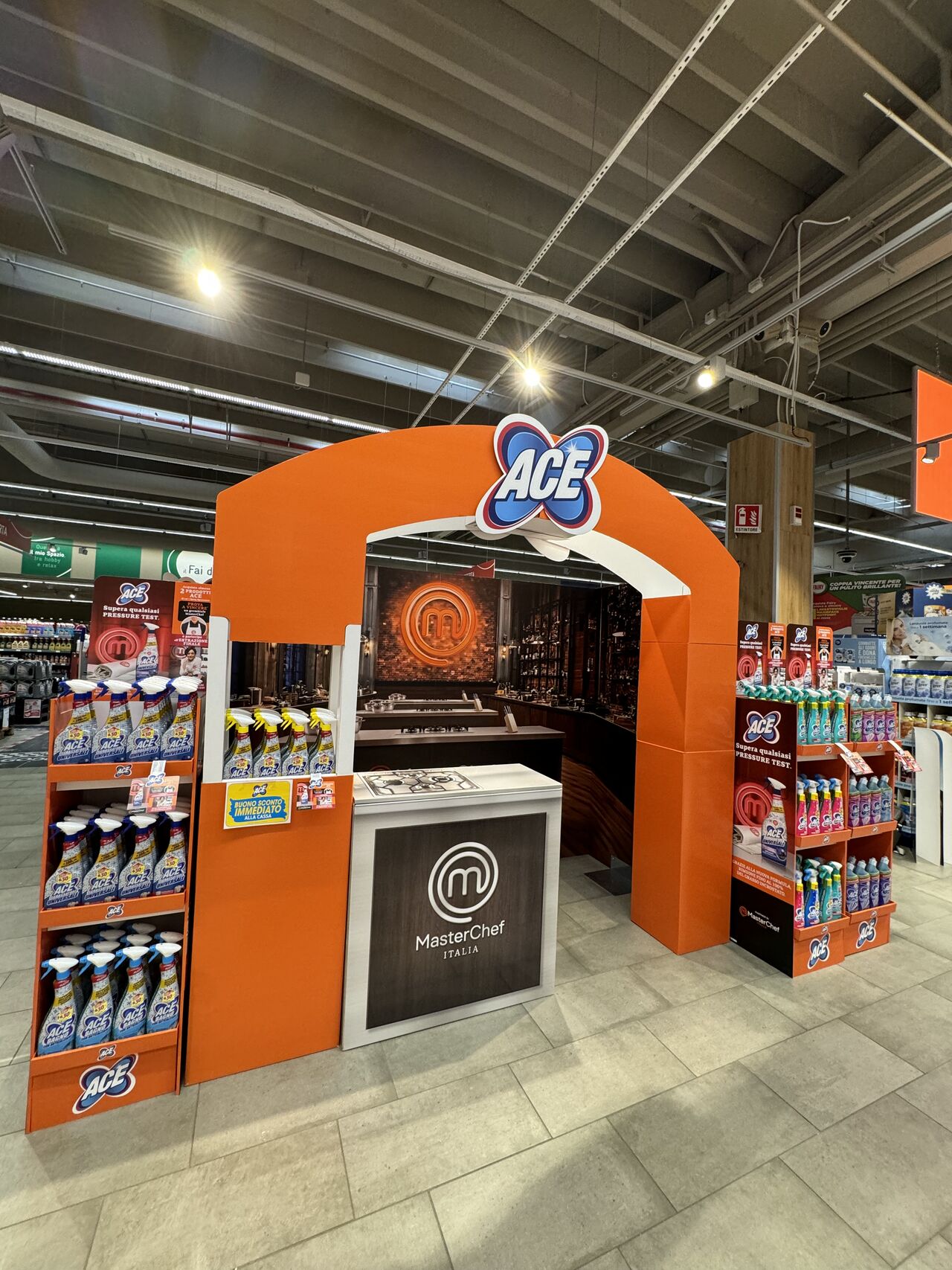 Ace, in occasione della partnership con Masterchef, ha realizzato ed implementato con il supporto creativo di Save As, un in-store toolkit (shelf extra shelf) ed un’isola teatralizzante ed instagrammabile fortemente ingaggianti per gli shopper.